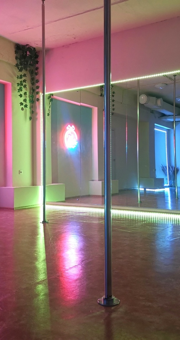 Красивая студия, можно сделать отличные фото/видео, удобный пол для экзота) Хожу на спорт к Ире и Дале, замечательные грамотные тренера, на занятиях всегда легкая непринужденная атмосфера)Приятный администратор Юля, улыбчивая, помогает решить все вопросы, утешает, если что-то не получилось на тренировке😊