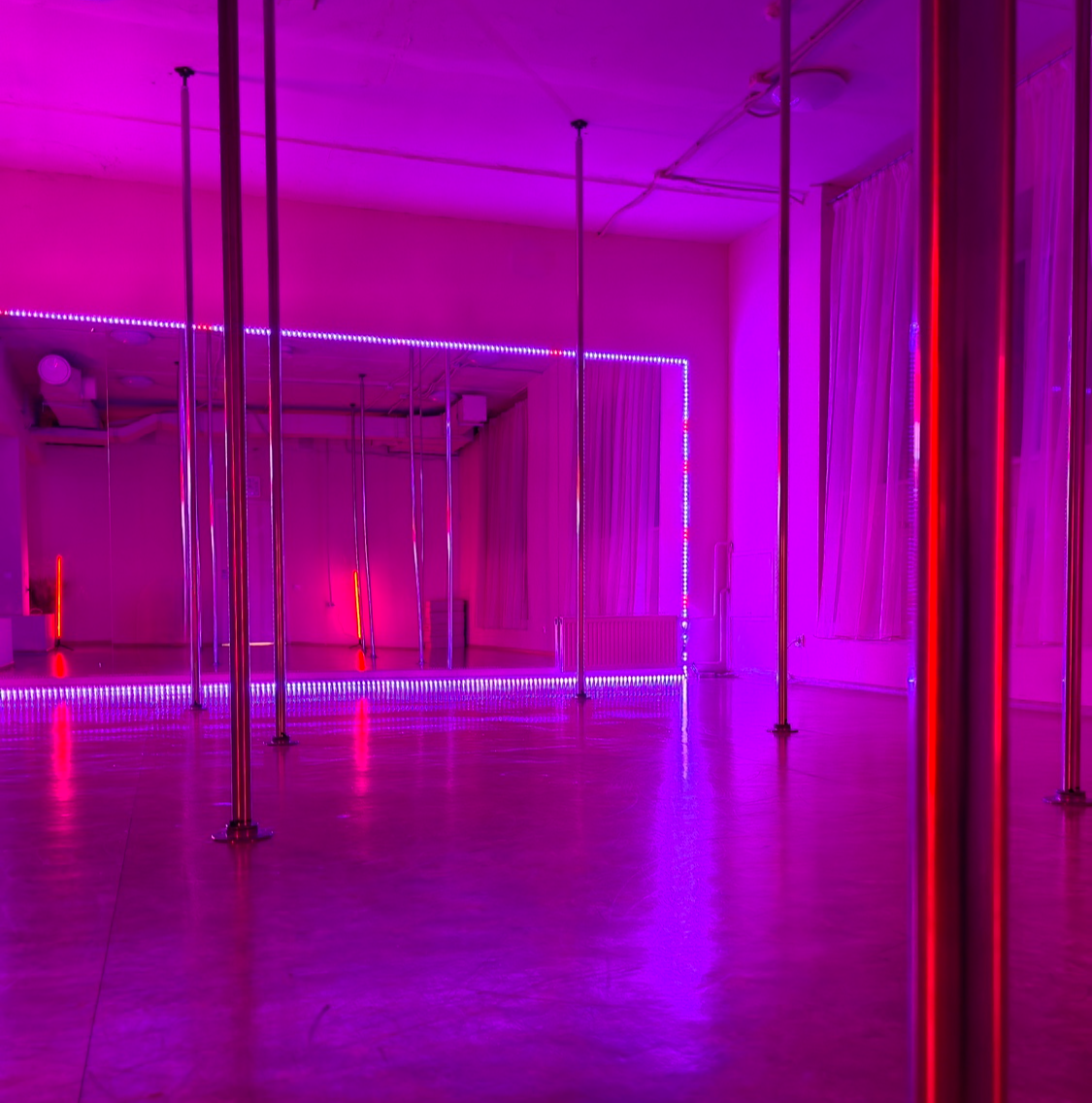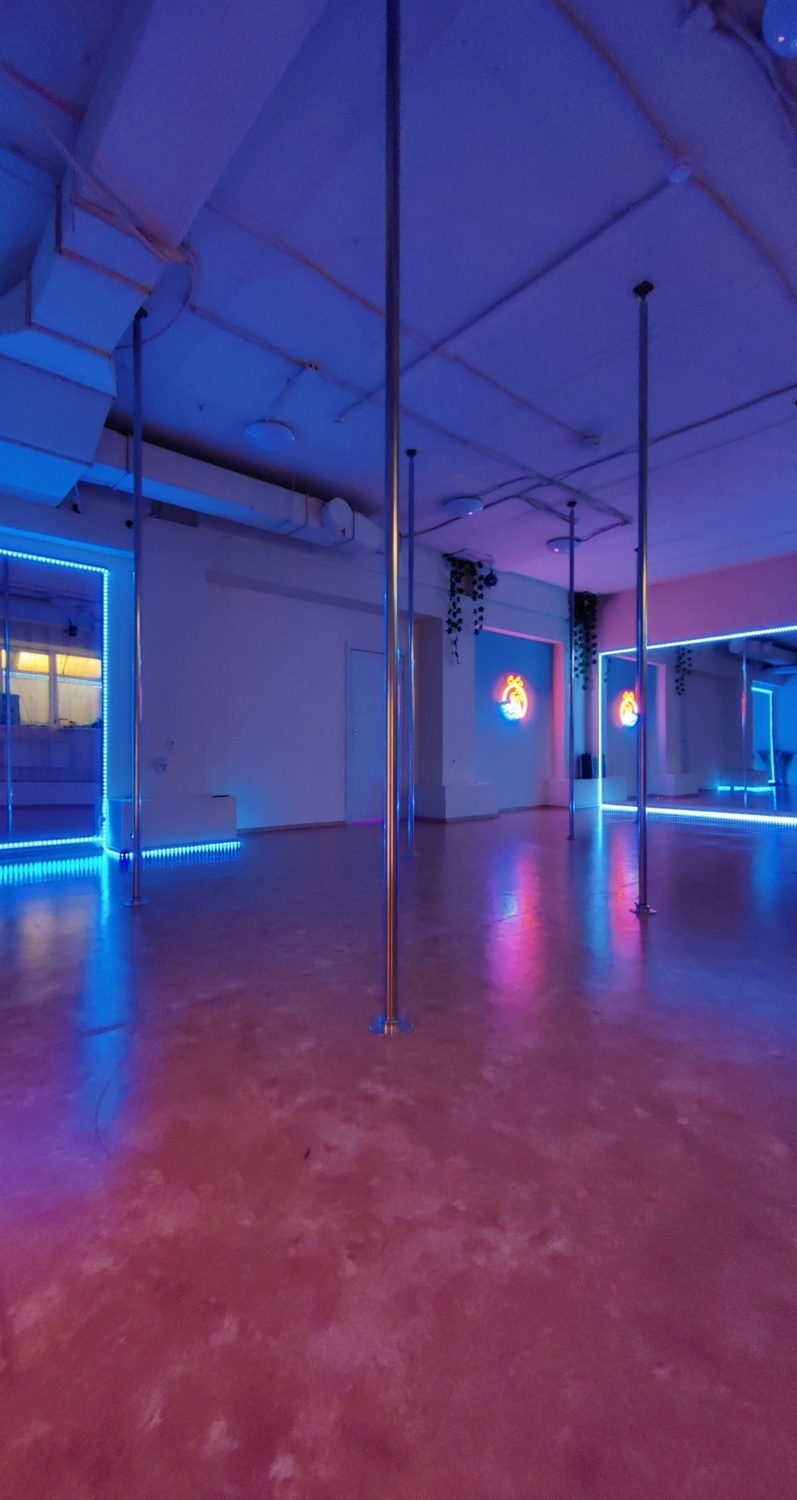 Красивая студия, можно сделать отличные фото/видео, удобный пол для экзота) Хожу на спорт к Ире и Дале, замечательные грамотные тренера, на занятиях всегда легкая непринужденная атмосфера)Приятный администратор Юля, улыбчивая, помогает решить все вопросы, утешает, если что-то не получилось на тренировке😊